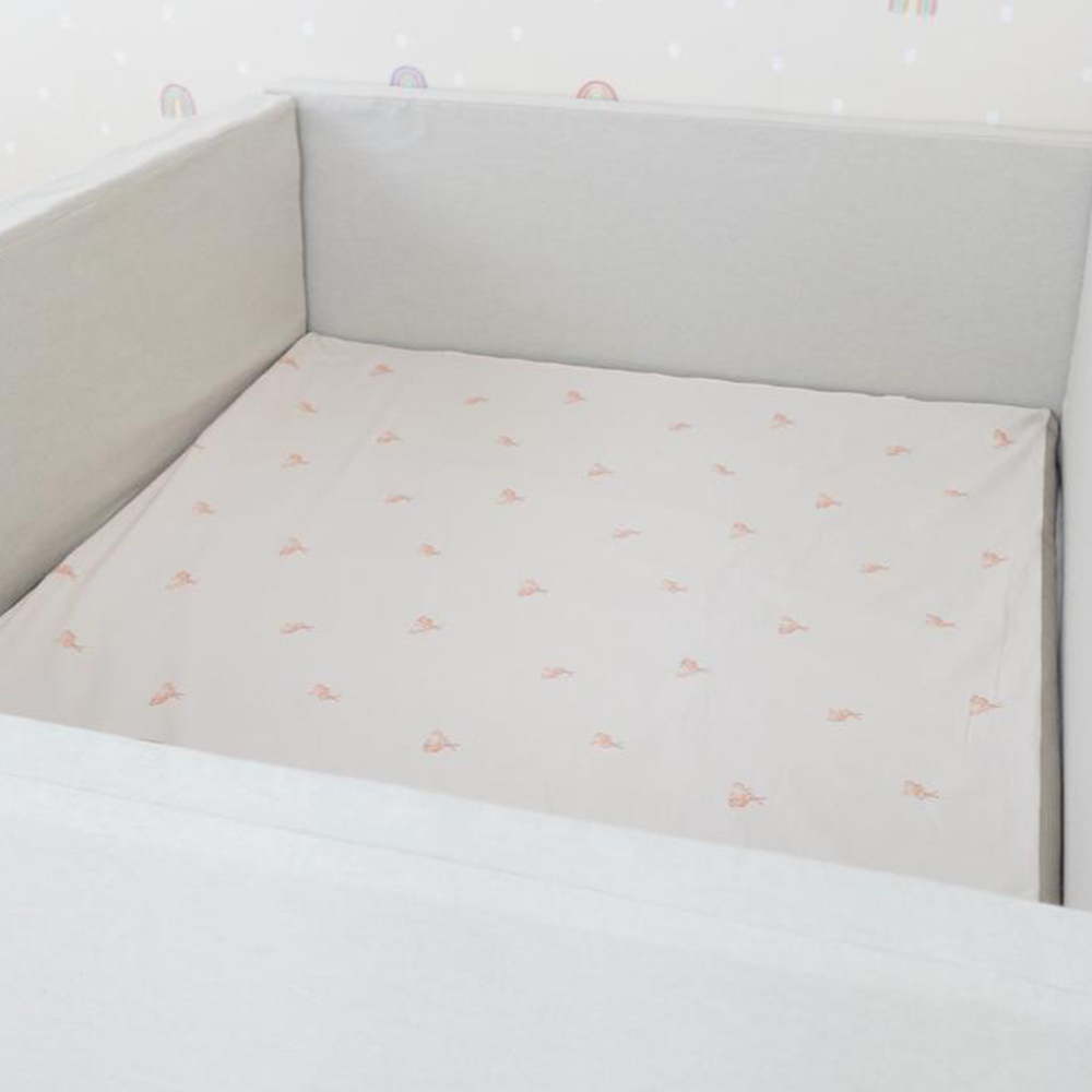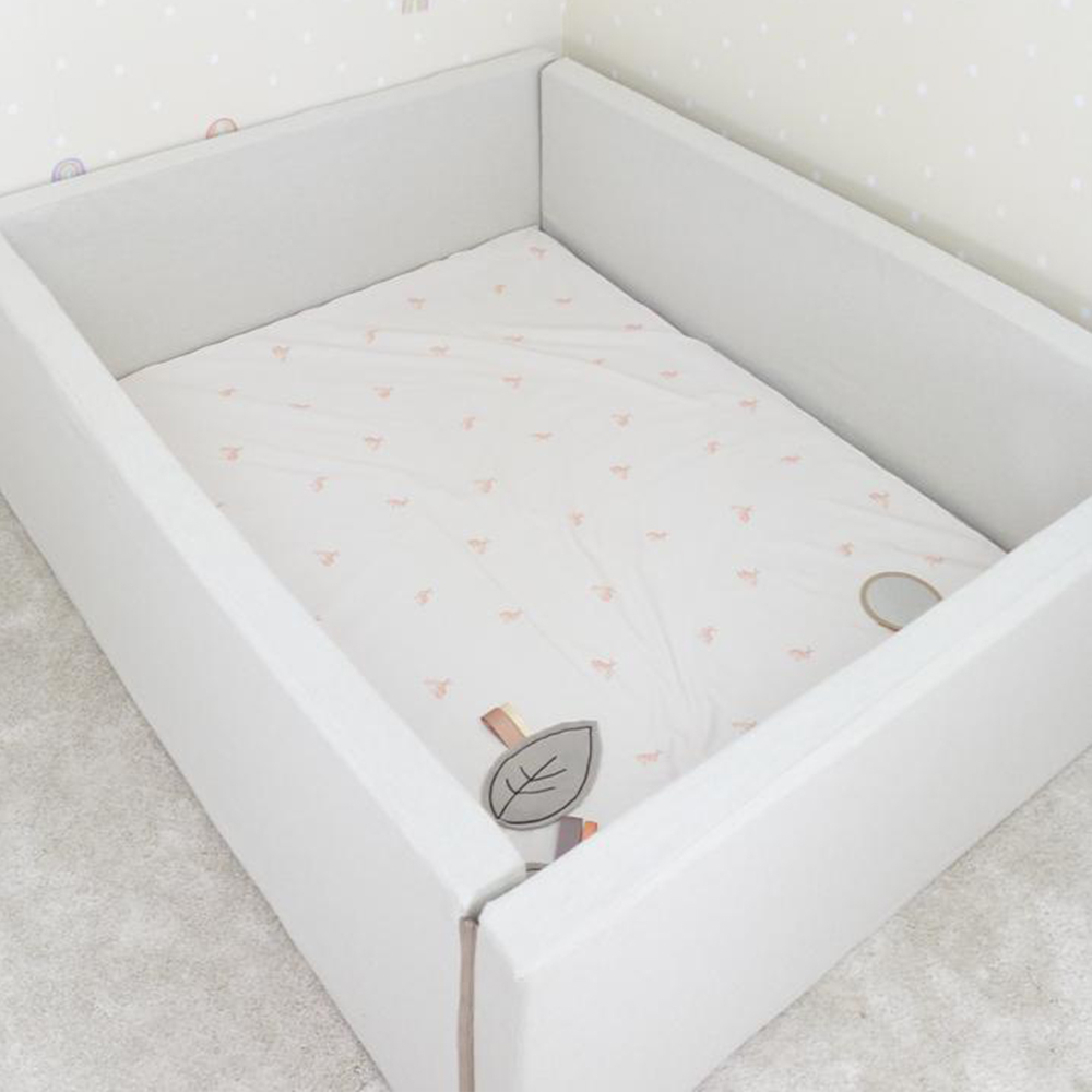 Suave, modular y pensado para el día a día real de las familias, crea un entorno más acogedor para estar, moverse, rodar o simplemente disfrutar cerca de mamá o papá.
