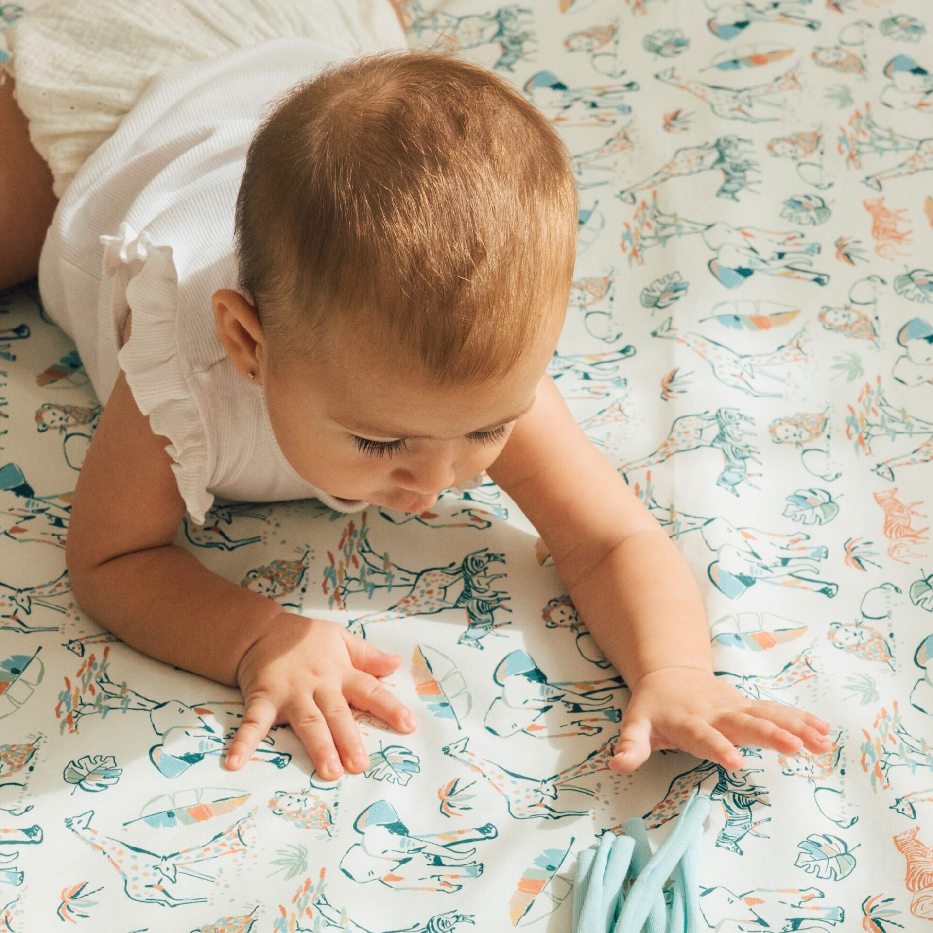Proporciona una zona segura y firme sobre la que el bebé puede moverse libremente. Pasar tiempo en el suelo les permitirá alcanzar hitos motores, fomentar