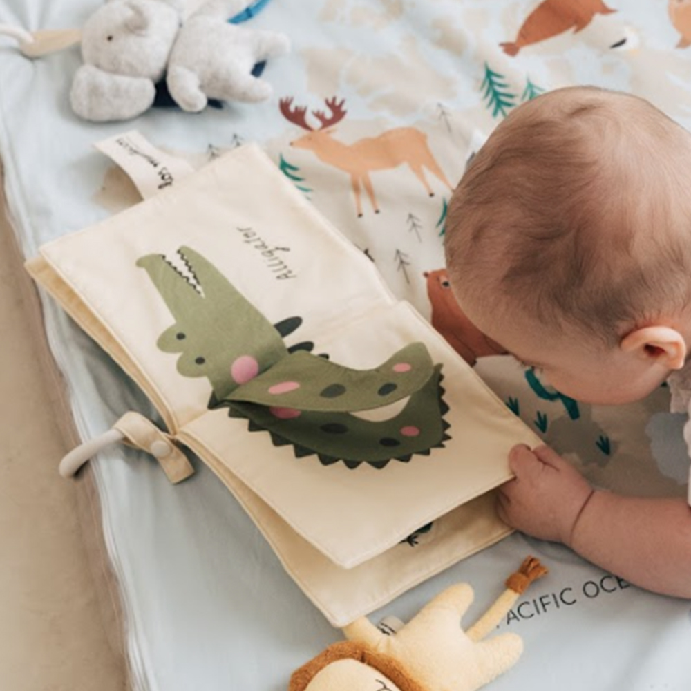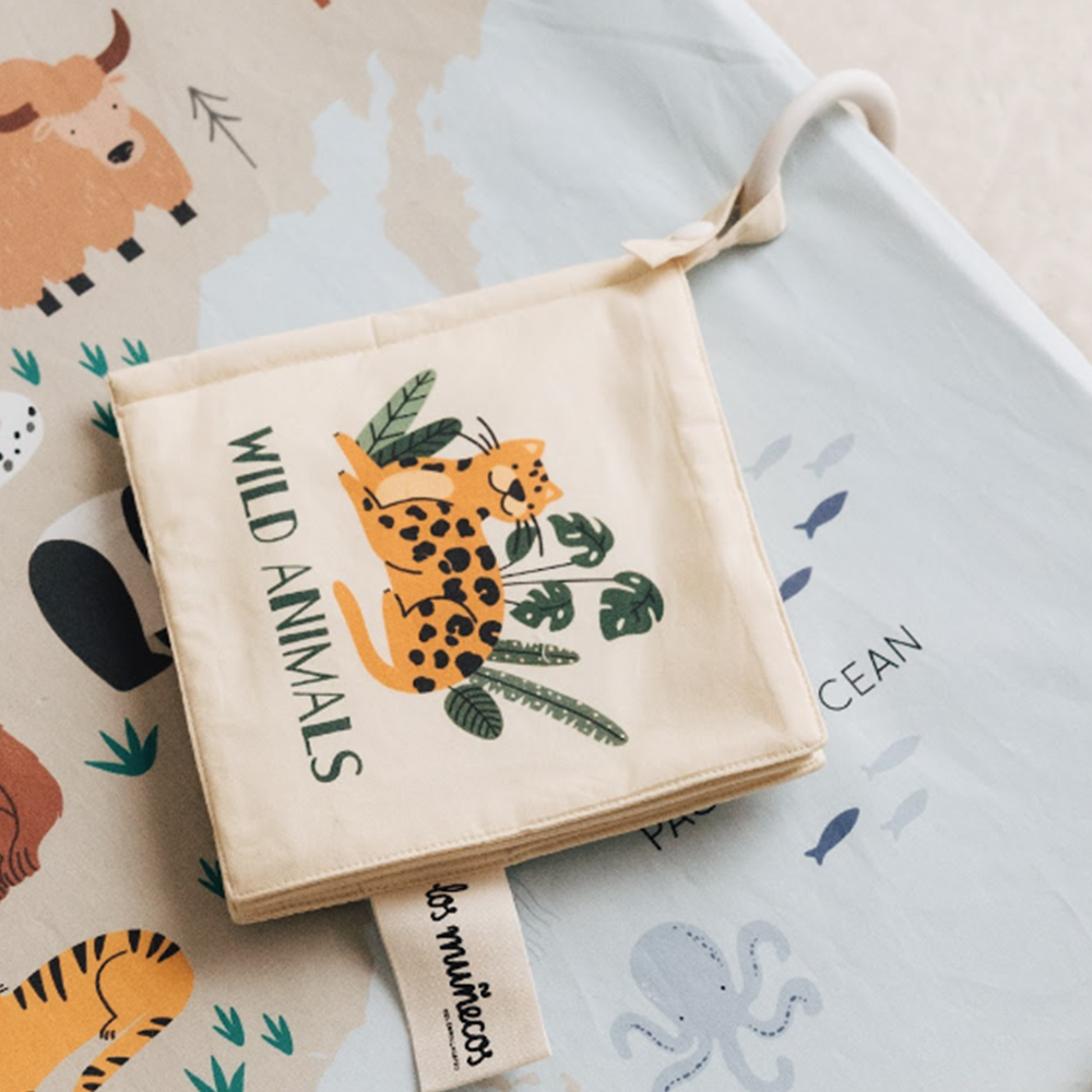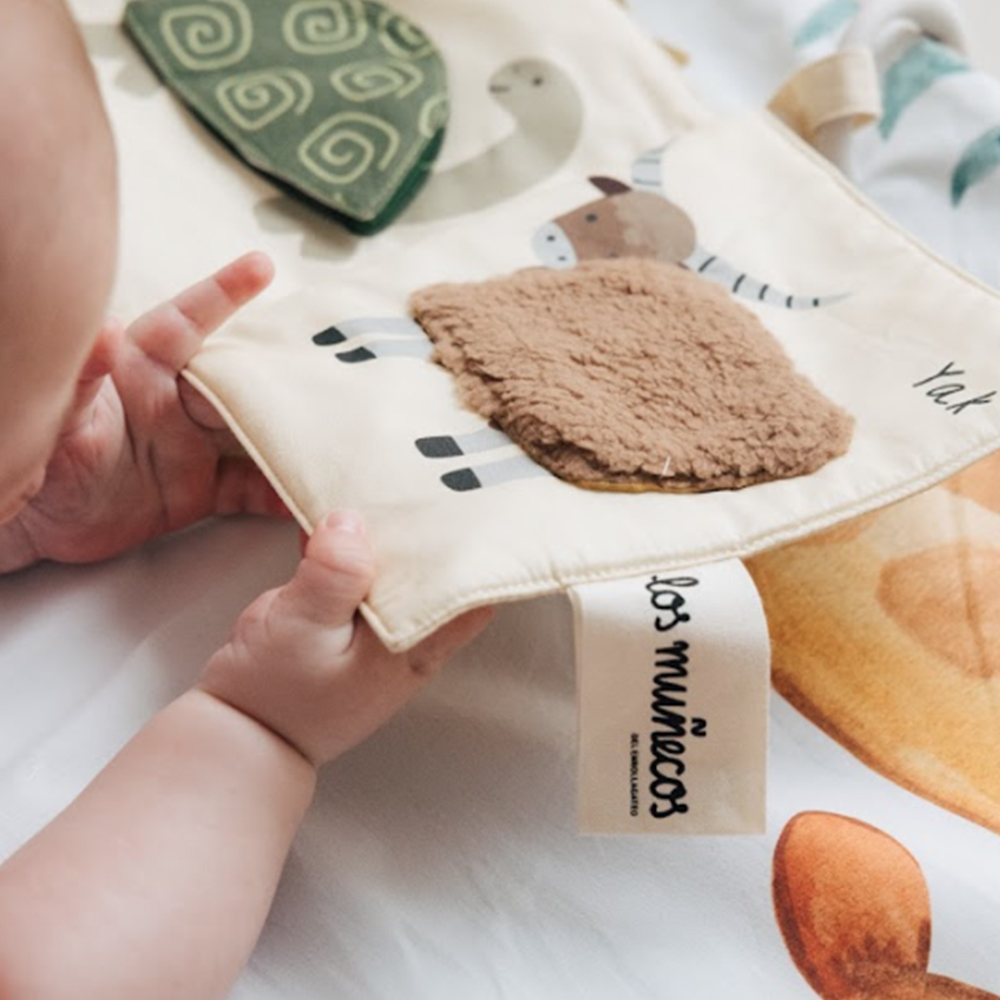 Un pequeño tesoro de tela que invita a descubrir un mundo de colores, formas y sonidos. Ideal para colgar en el Arco de Mimaar, en el Enrollagateo o llevar en el carrito, el libro acompaña al bebé en sus primeros juegos de exploración.